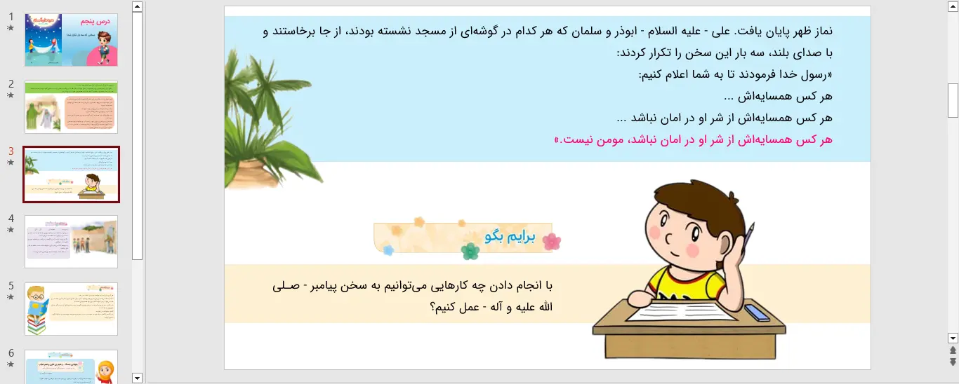 نمونه ای از اسلاید های پاورپوینت هدیه های آسمان چهارم درس 5 پنجم – سخنی که سه بار تکرار شد!