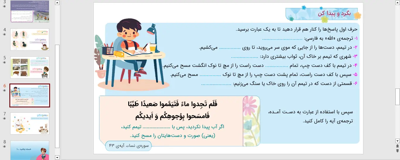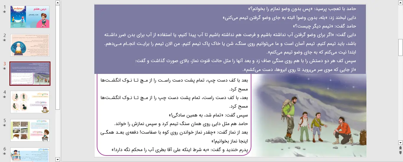 نمونه ای از اسلاید های پاورپوینت هدیه های آسمان چهارم درس 7 هفتم – نماز در کوهستان