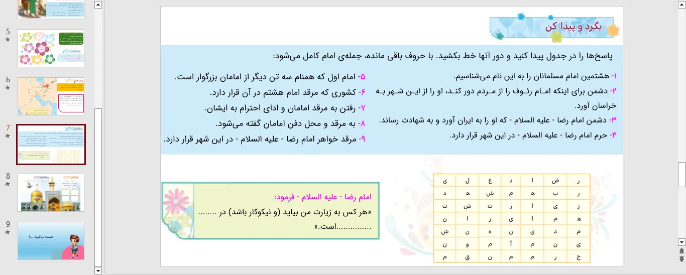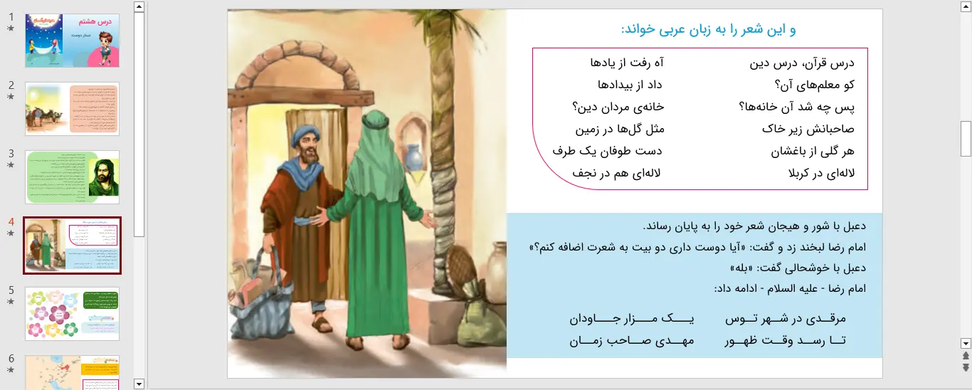 نمونه ای از اسلاید های پاورپوینت هدیه های آسمان چهارم درس 8 هشتم – دیدار دوست