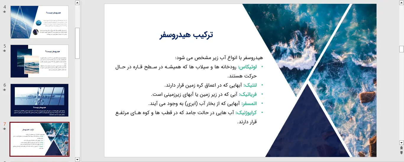 نمونه ای از اسلاید های پاورپوینت هیدروسفر
