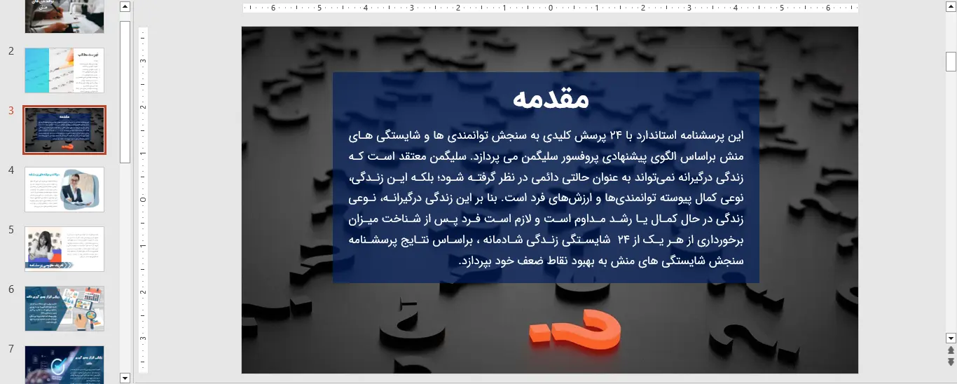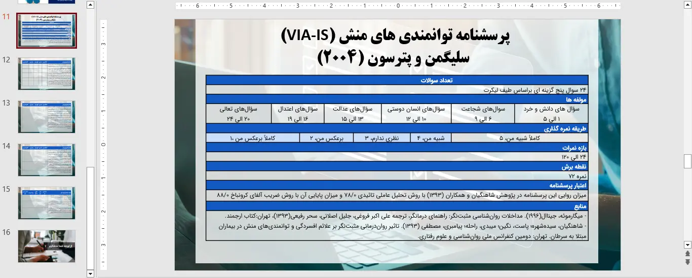 نمونه ای از اسلاید های پاورپوینت پرسشنامه توانمندی های منش