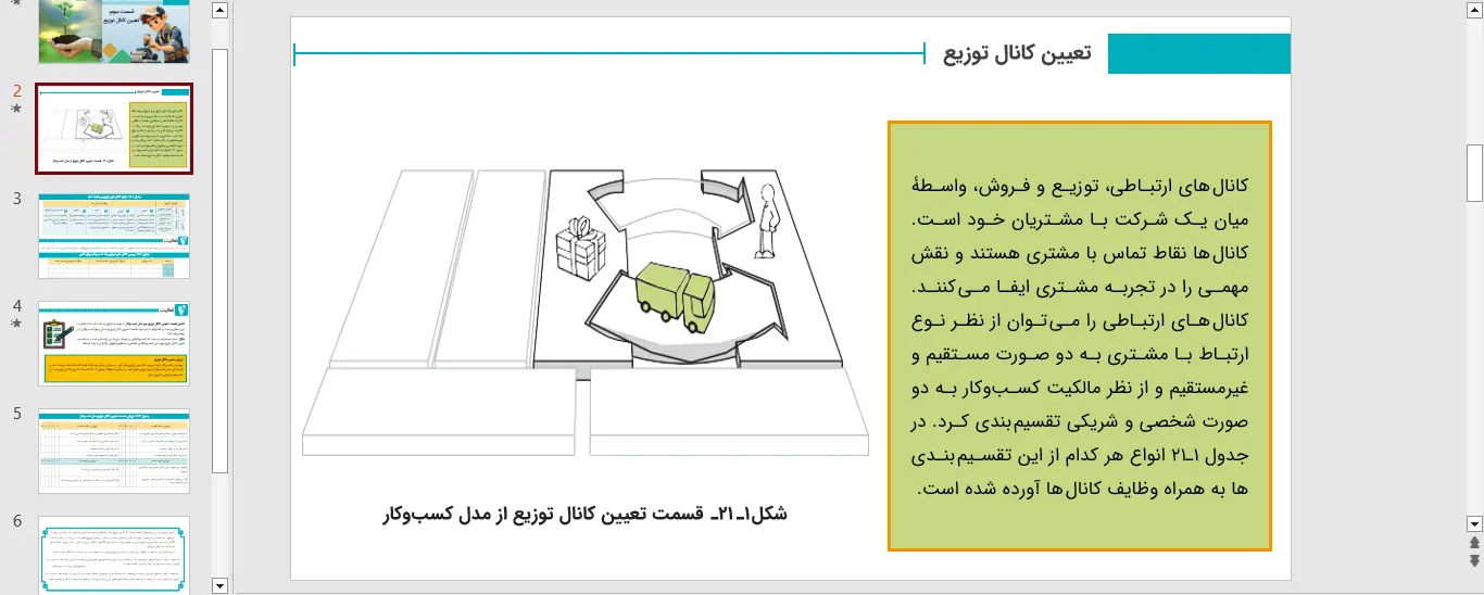 نمونه ای از اسلاید های پاورپوینت بخش 21 کارگاه کارآفرینی و تولید – مدل کسب و کار قسمت سوم: تعیین کانال توزیع