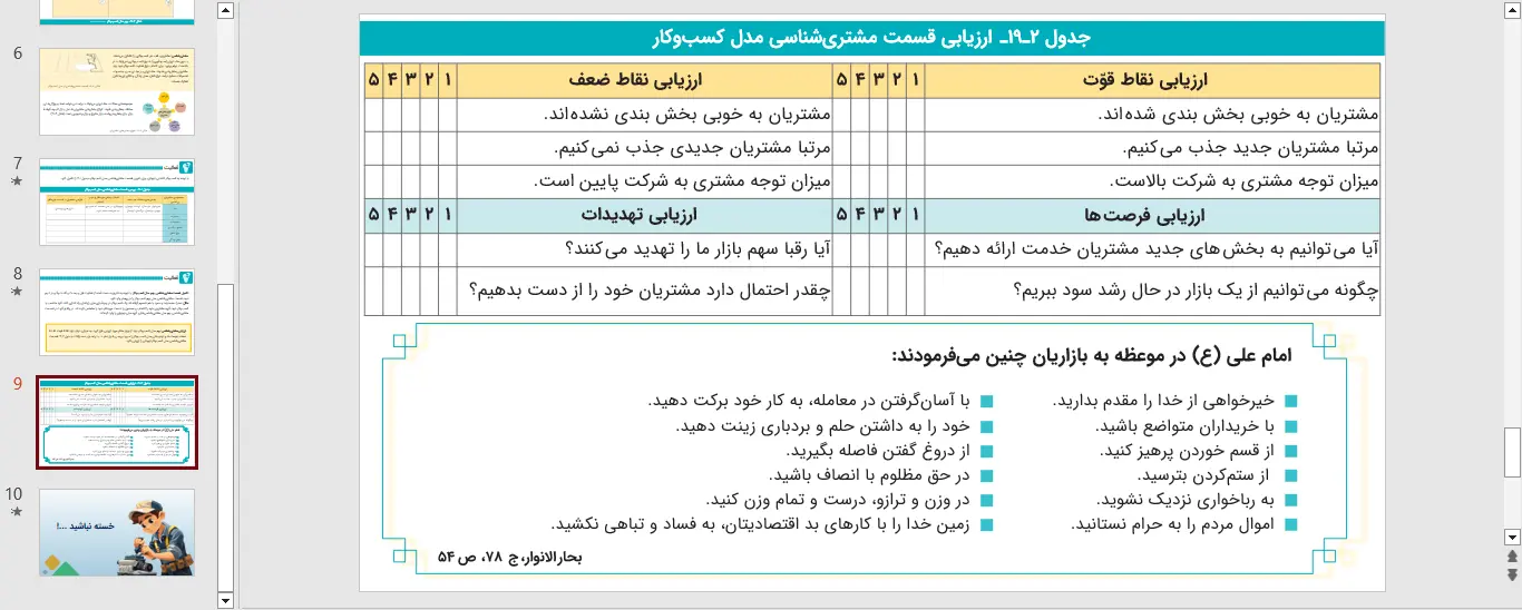 جزئیات و دانلود پاورپوینت کارگاه کارآفرینی و تولید پایه دهم بخش 19 – مدل کسب و کار قسمت یکم: مشتری شناسی – سال تحصیلی 1405-1404