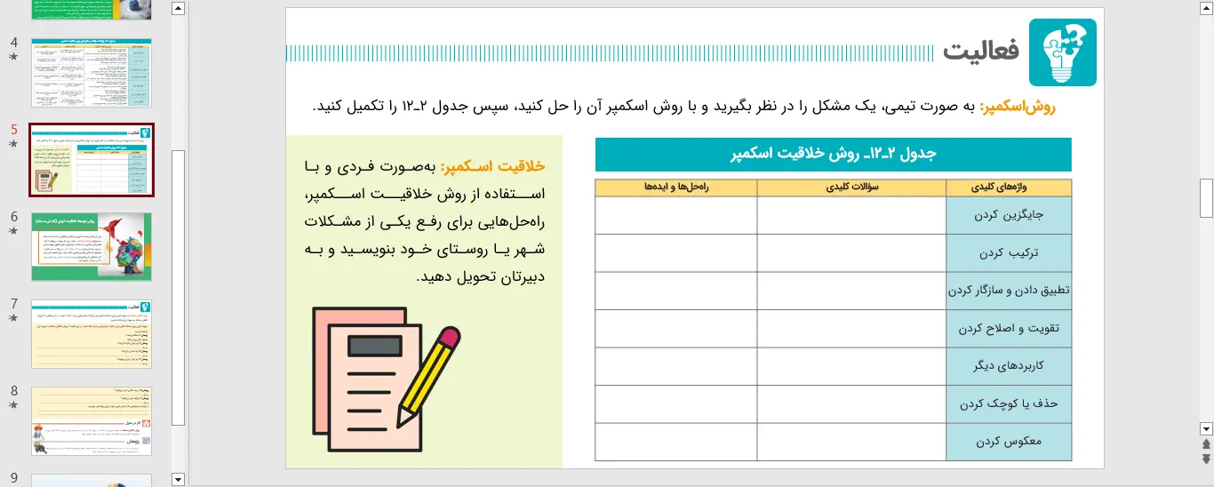 نمونه ای از اسلاید های پاورپوینت بخش 12 کارگاه کارآفرینی و تولید – توسعۀ خلاقیت فردی