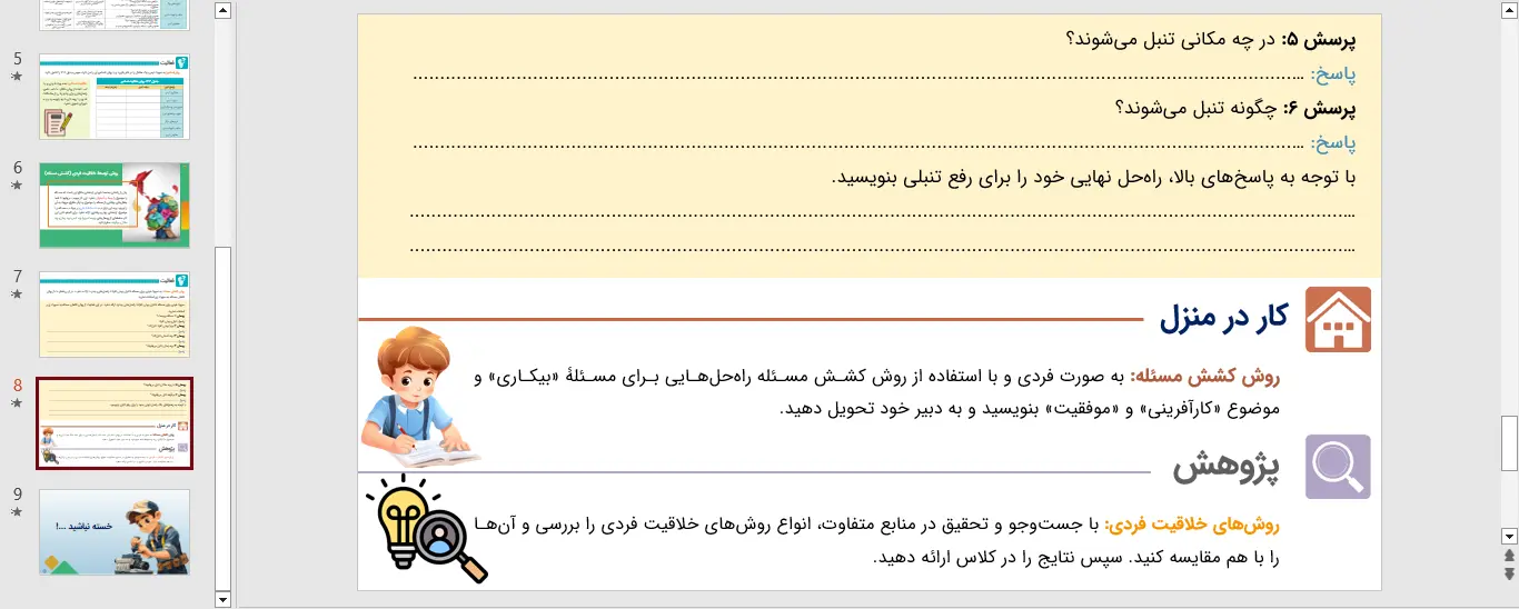 جزئیات و دانلود پاورپوینت کارگاه کارآفرینی و تولید پایه دهم بخش 12 – توسعۀ خلاقیت فردی – سال تحصیلی 1405-1404