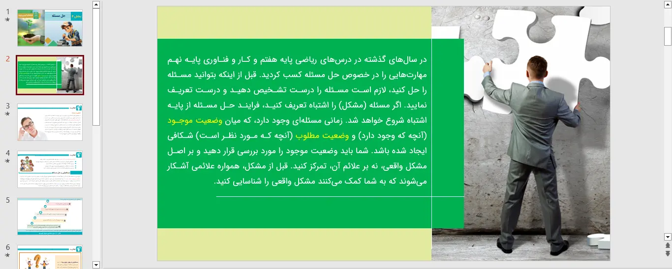 نمونه ای از اسلاید های پاورپوینت بخش 4 کارگاه کارآفرینی و تولید – حل مسئله