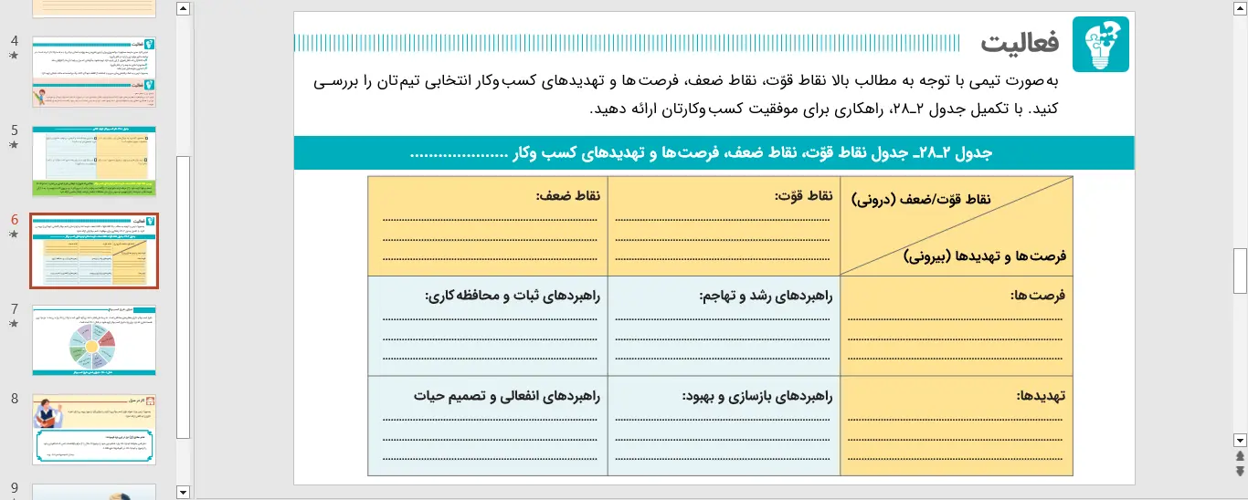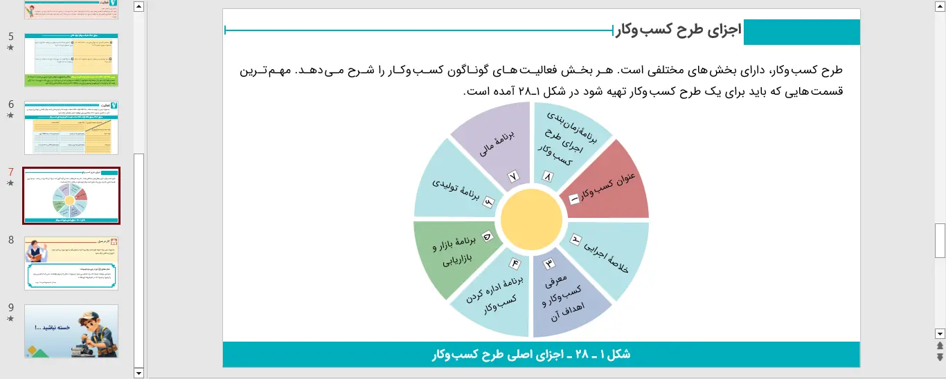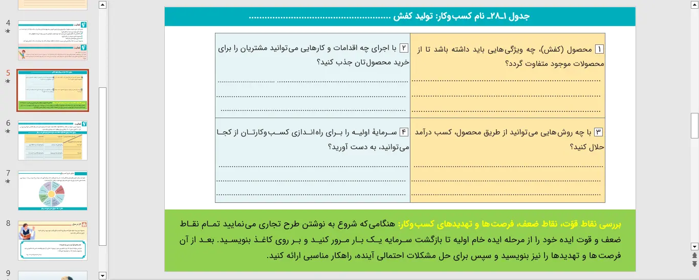 نمونه ای از اسلاید های پاورپوینت بخش 28 کارگاه کارآفرینی و تولید – طرح کسب و کار