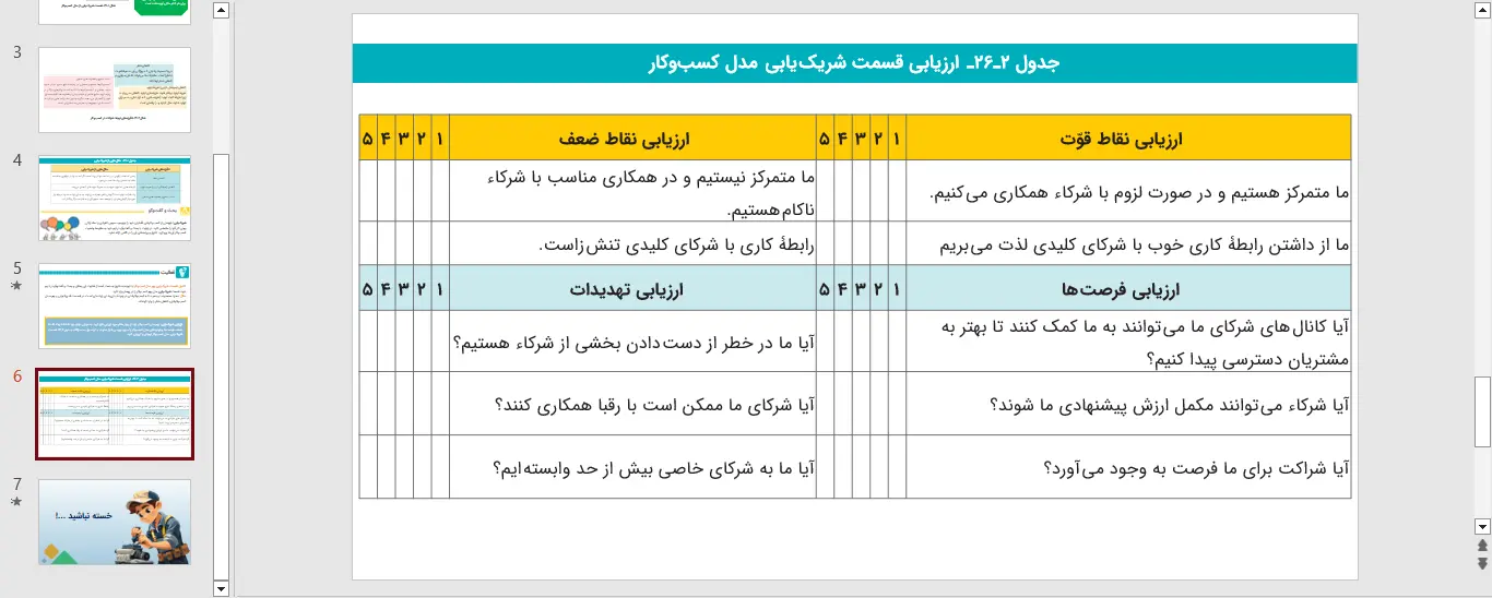 نمونه ای از اسلاید های پاورپوینت بخش 26 کارگاه کارآفرینی و تولید – مدل کسب و کار قسمت هشتم: شریک یابی