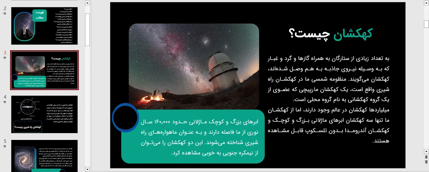 نمونه ای از اسلاید های پاورپوینت کهکشان راه شیری